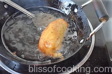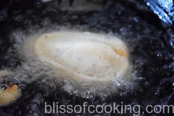 • Dip the peppers in the batter and coat well and fry in oil till golden.