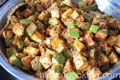 This pickle is loaded with spices. To enhance the taste and aroma of this pickle, the spices are lightly roasted. This is my Mom’s recipe that I am sharing. She makes delicious pickles. I have seen my mother making this Achaar in huge quantity year after year. As summer approaches she gets busy preparing spices for pickles. She used to make this pickle and other varieties with love and care, and pack for many of our friends. Even my aunts use to carry this pickle with them while returning to their home after spending summer holidays with us. This summer my mother was with me and I did not let go this opportunity of seeing her make this pickle after a long long time.