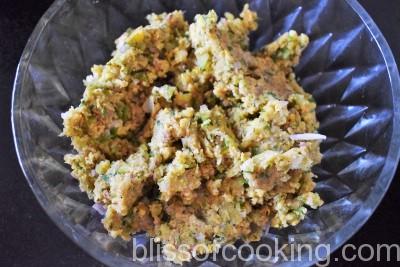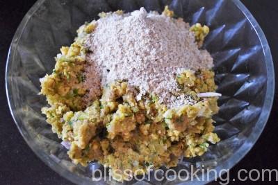 - Add lemon juice, sprinkle the ground oats over the mixture and mix well with a big spoon until the mixture holds together when you shape a portion into a patty.