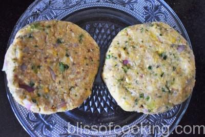 - Now add 1 tablespoon oil and place the patties in the pan, leaving enough room to flip them. Grill the patties until browned and crisp.