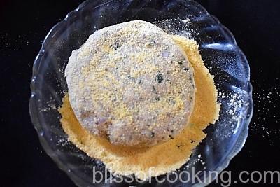 - Roll into corn meal to cover evenly. Repeat the process for each patty.