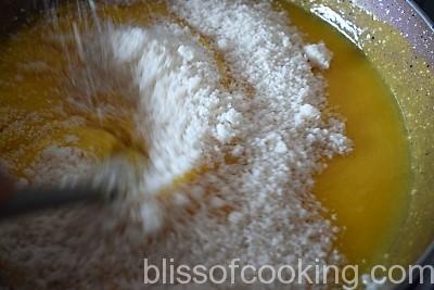 - Spread 4 tablespoon sugar in a pan and heat without stirring. It will start to melt and turn golden. Pour in a tin mould and set aside.