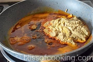 - Add the paste and saute till oil starts to separate.