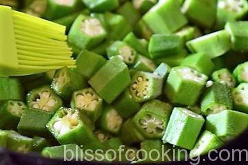 - Air fry the bhindis or fry in oil. Set aside.