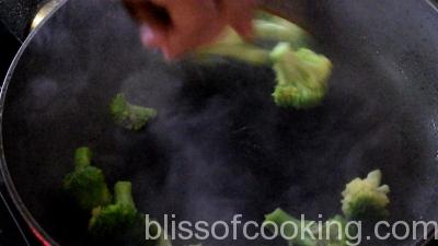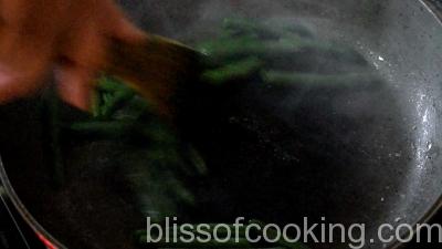 - In a pan blanch carrots, beans, broccoli and set aside.