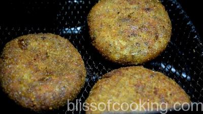 - Make the Paneer (Cottage Cheese) and Vegetable cutlet mixture as per the recipe. You can make a big patty or 2 to 3 small patties. Fry them or air fry them. Set aside.