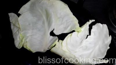 - Arrange a few leaves of cabbage on the platter.