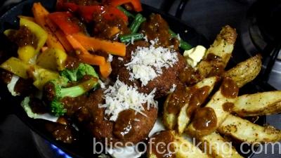 Go ahead and indulge in this restaurant style sizzling dish at home with your loved ones. I can assure you that all the time spent will be worth it. You may like to try our other similar recipes like Double Cheese Veggie Burger, Crispy Potato Wedges (Oil Free), Sizzling Jamaican Platter and Sizzling Vegetables With Fragrant Rice (Chinese Sizzler).