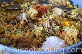 • Now add all the dry masalas and saute for a minute.