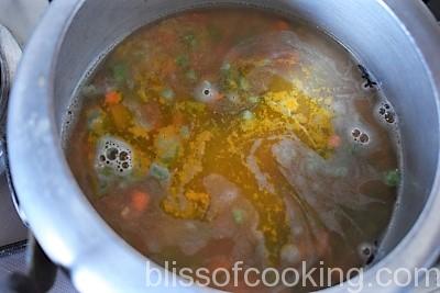 • Switch off the heat and open the lid only after all the pressure is released. Adjust the thickness and seasoning.