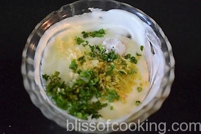 Zucchini And Corn Fritter / patty is a great tea time snack or can be served as an appetizer. I have served this with a Yogurt Dip. This yogurt dip is also very easy to make. I have used lemon rind to flavor this dip.