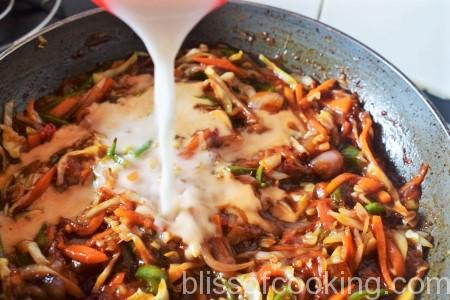 • Mix cornflour in 1 cup of water and to the vegetables.