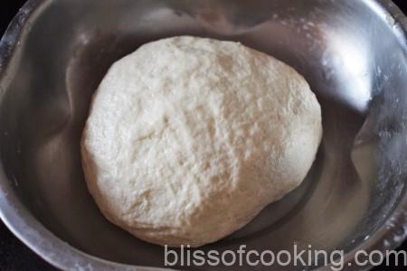 - Knead the dough well for at least 5 to 6 minutes on a working surface. Add half of the remaining oil and knead. Now apply rest of oil on top. Cover and rest it for 2 hours.