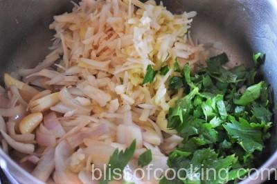 - Add potatoes, celery and saute for a minute, pour 1 cup water and cook till the vegetables are mushy. Cool and blend.