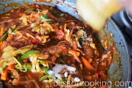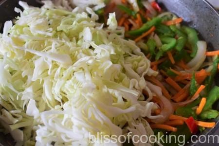 • Now add cabbage and saute for another 3 minutes.