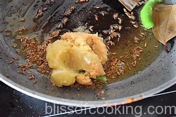 • In the same pan add the ginger garlic paste and saute for a minute on low heat.