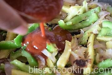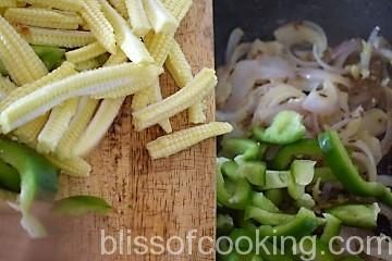 • Add capsicum and corn saute for 2 minutes.