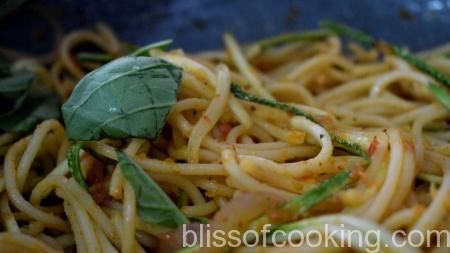 This dish is full of good-for-you veggies and is incredibly healthy. Instead of regular pasta I have used whole wheat spaghetti and Zoodles (zucchini noodles). Meat balls are replaced with protein and calcium rich cottage cheese balls. A rich sun-dried tomato sauce also has lots of vegetables.