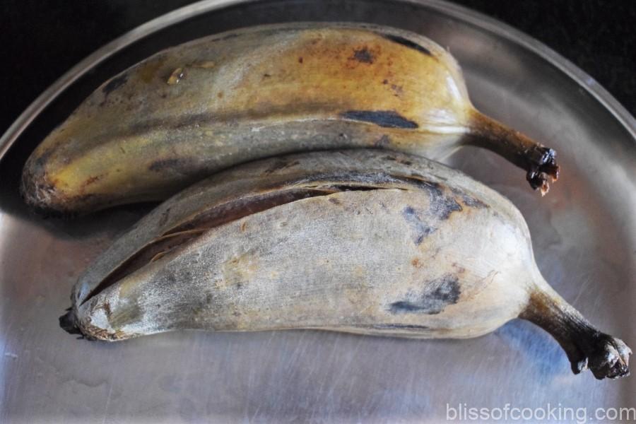 - Pressure cook the banana and potato till soft. Let it cool so that it is easy to handle.