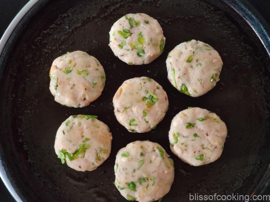 - Pan fry the tikkis on both the side on medium to low heat till crisp. Alternately deep fry till golden or air fry them.
