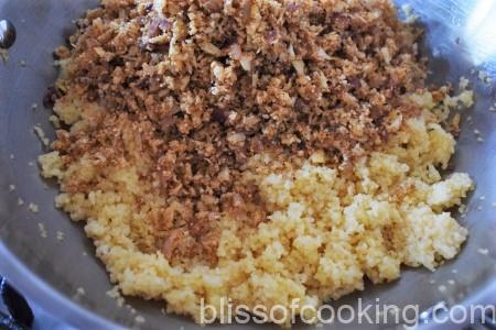 - Switch off the heat. Let it sit for 20 minutes until all the water is absorbed by the bulgur. Drain it in a strainer to get rid of the excess water if any and set aside.