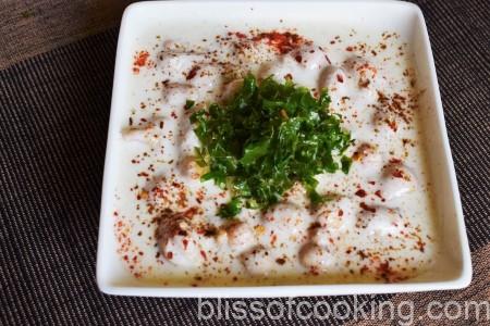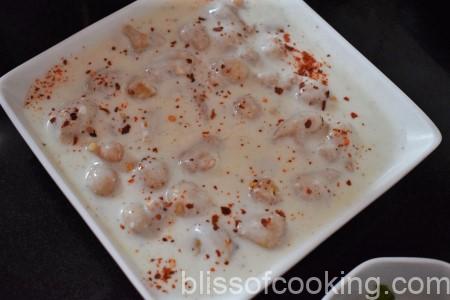 • Gently squeeze the pakori and add to the yogurt, mix.
