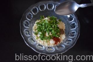• Mix all the ingredients for the pakori in a bowl.