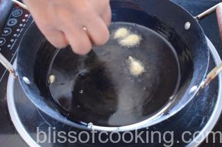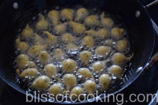• Heat oil in a pan; drop very small portion in the hot oil and fry the pakori on medium heat.
