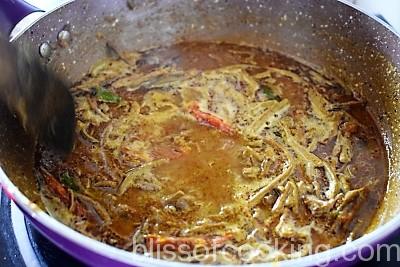 - Now pour a cup of water and let it cook for 10 minutes till the gravy thickens.