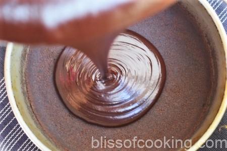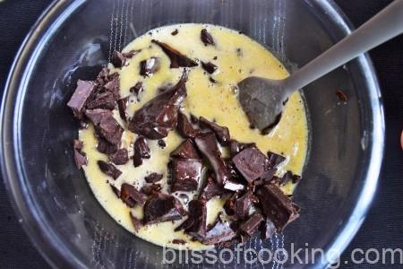- Pour this mixture over the chocolate and stir gently till the chocolate melts and the mixture is smooth. Let the ganache come to room temperature.
