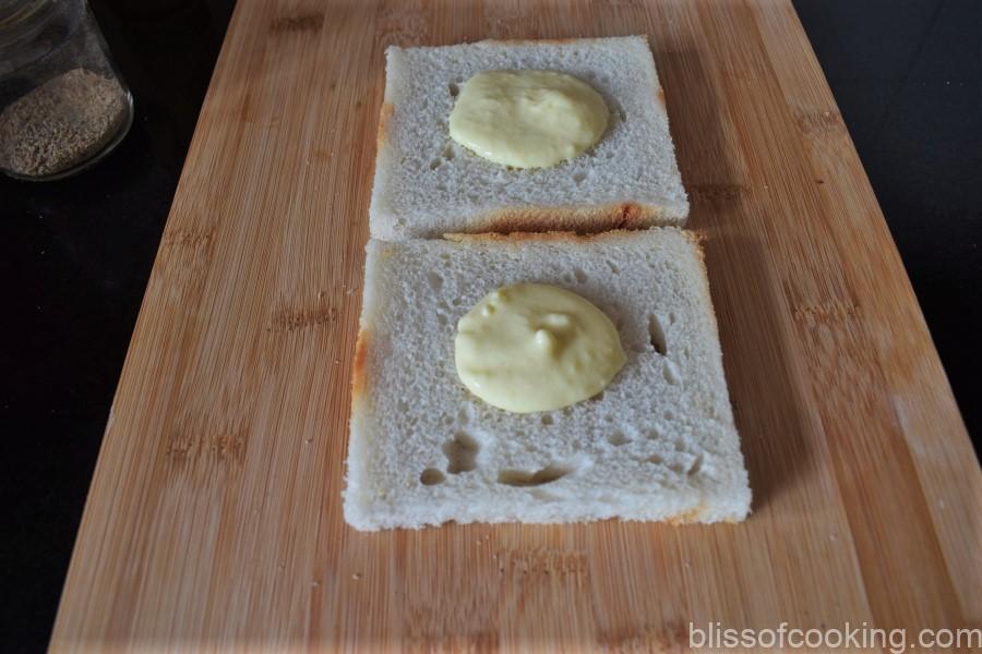 - Spread the cream on both the slices of bread.