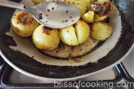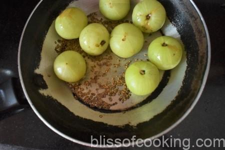 - Heat oil in a small pan; add carom seeds, amla and saute for few seconds.