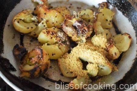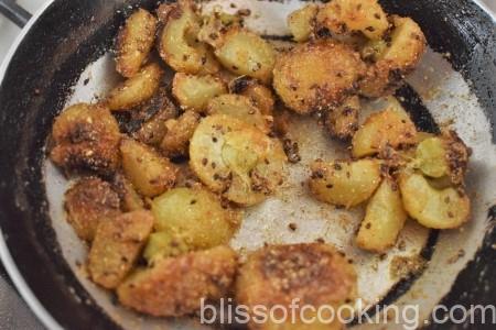 - Add coriander and pepper powder and saute till the amlas are well coated and roasted.