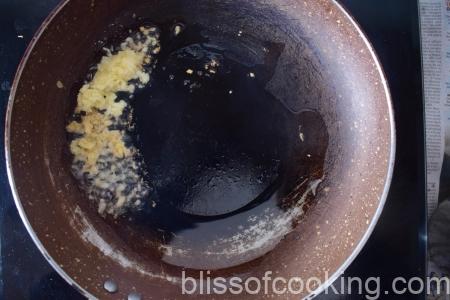 - Heat oil in a pan; add ginger, garlic and saute for 30 seconds.