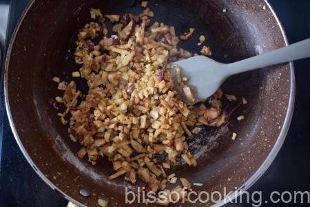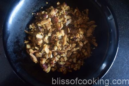 - Add Brinjal and saute for 5 minutes on medium heat.