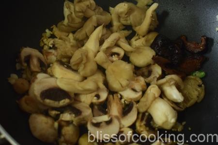 - Add both the mushrooms and stir for 2-3 minutes