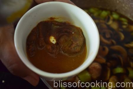 - In a bowl add 4 tablespoon stock, miso paste and mix well.