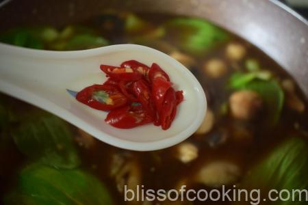- You can use homemade vegetable stock or store-bought one. Fresh red chillis can be added to the soup along with bokchoy if you don’t mind the heat.