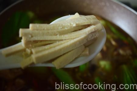 - Add thinly sliced tofu and simmer for two minutes.