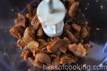 • Add raisins, chopped figs (anjeer) to a food processer and grind coarsely.