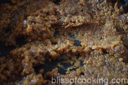 • Add ghee to a pan; add anjeer mix and stir for 2 to 3 minutes on low flame until there is no moisture left, but the mixture is still soft.
