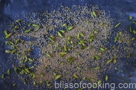 • Dry roast the khuskhus (poppy seeds) and set aside
