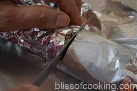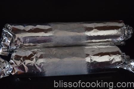 • Transfer the roll on to an aluminum foil, cover the fig log and seal the edges.