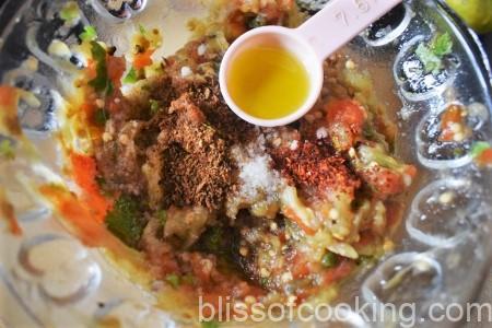• Transfer in a bowl and mash with a fork to a paste-like consistency. Add rest of the ingredients and set aside.