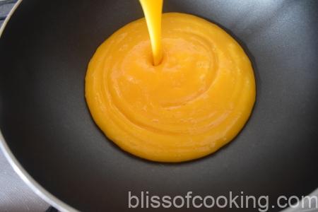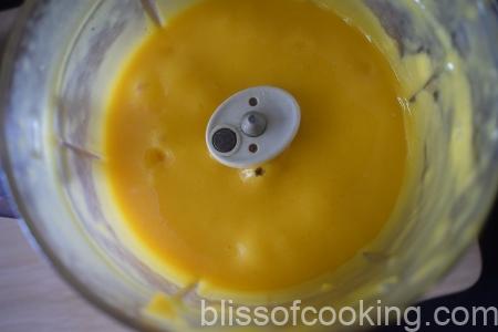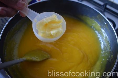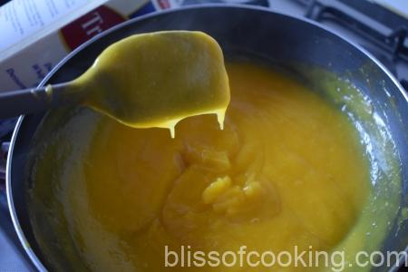 Custard/Lemon curd is traditionally made with a mixture of egg yolks, sugar, butter and lemon juice but this version has no eggs. You can adjust the flavours as per your pallet while making the custard at home. This vegetarian custard has a beautiful golden hue, of the mangoes.
