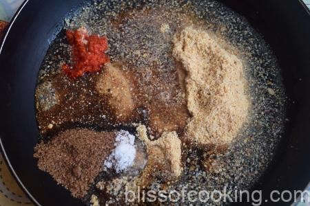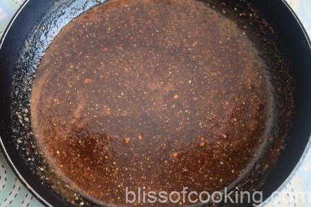 Mix all the ingredients together in a saucepan and cook till the sugar dissolves and the sauce starts to thicken. Switch off and keep in a serving bowl. (Make the sauce at least an hour ahead for the flavours to mingle)