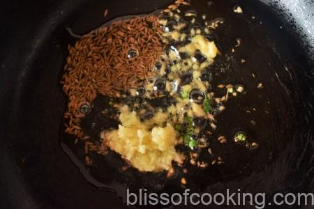 • Heat ghee/oil in a pan; add cumin and let it crackle.