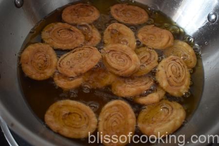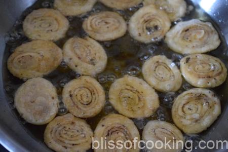 • Heat oil in a pan, and fry them in a batch of 10 to15 on medium to low heat by turning often.