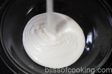 - Transfer in a bowl, add salt and adjust the consistency to a thick batter by adding little water. Cover and set aside for 30 minutes.