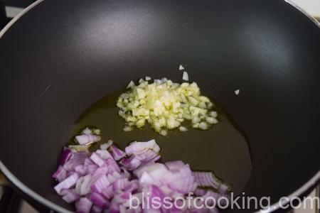 - Heat oil in a pot; add the garlic, onions, and sauté till it is translucent.